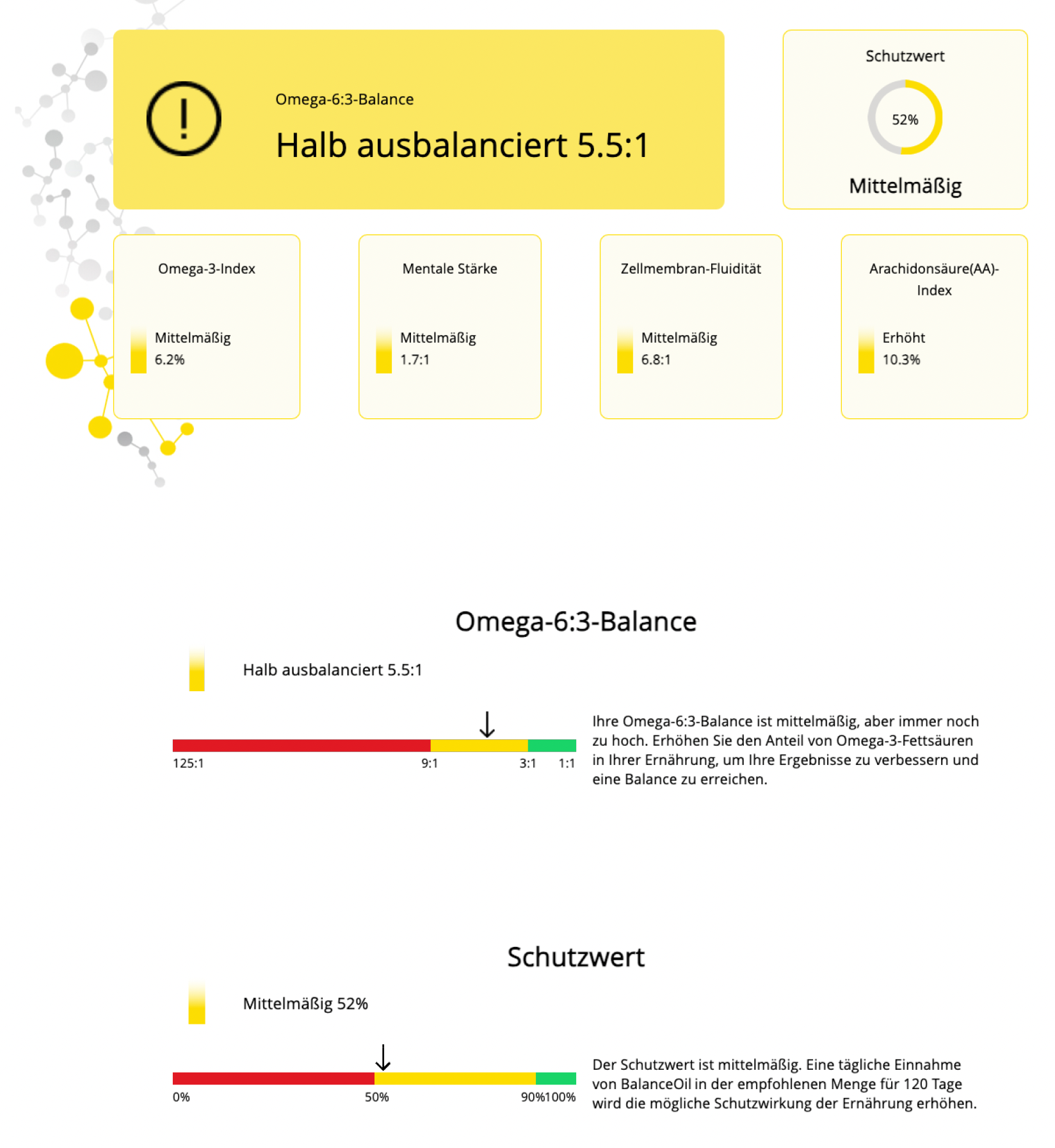Das Fettsäureprofil kann Hinweise auf Fettsäurebalance, Zellmembranstatus und Entzündungsprozesse geben.